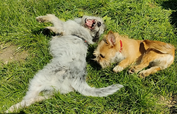 Die beiden haben unglaubliche 3 Stunden am Stück wild miteinander gespielt und gerauft und sind gerannt und zeigten zum Ende des Besuchs trotzdem kaum Ermüdungserscheinungen. Da könnte man glatt neidisch werden...